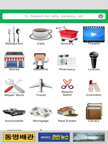 - Tap one of popular icons in main page for quickly browsing a list of businesses in categories