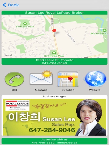 - Call, text, email, or find a map for the business in a single page
