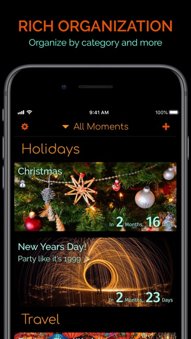 The first day of a new job, an upcoming vacation, the big day; these are some of the moments that shape our lives in significant ways. being reminded of them is a great way to bring a moment of joy to your day! Moments is here to help you track and build excitement for your special events.