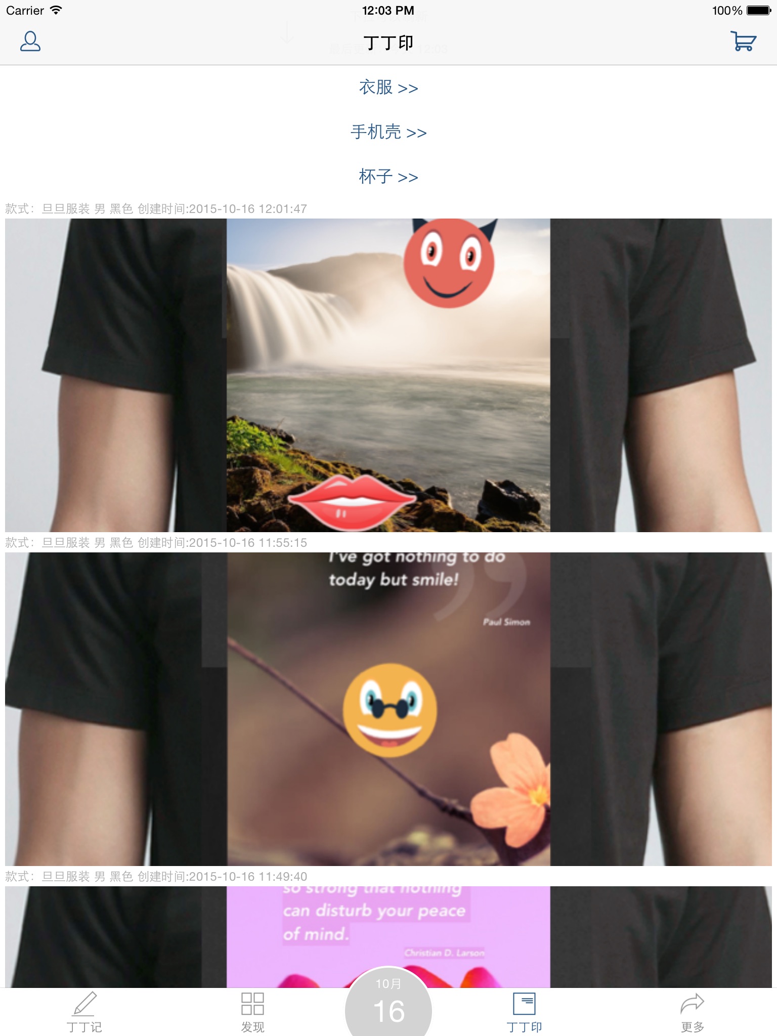丁丁印记,是作者想要表达的一款很酷又很想带给大家愉悦心情DIY设计软件。丁丁印记每天会推送一篇美图美文,希望通过这种方式传递美好的瞬间;丁丁印记同时也允许用户通过制作美图美文的方式记录生活中的精彩时刻;最后你还可以将你喜欢的美图美文打印(DIY)到你的生活物品上,将美好带进现实。