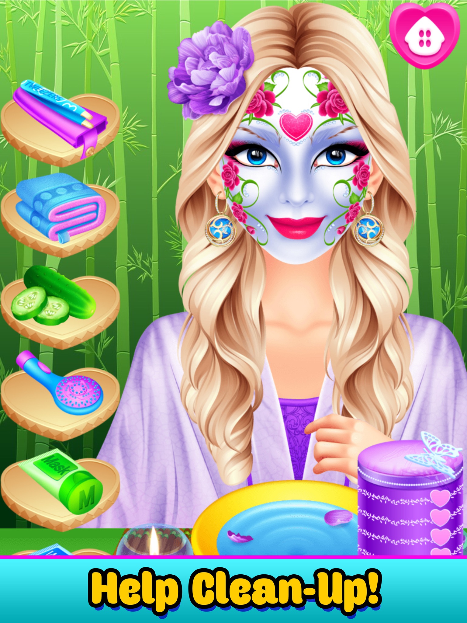 Level 1: Mommy Spa! Wrap up hair, put on a face-mask, clean-up and much more!