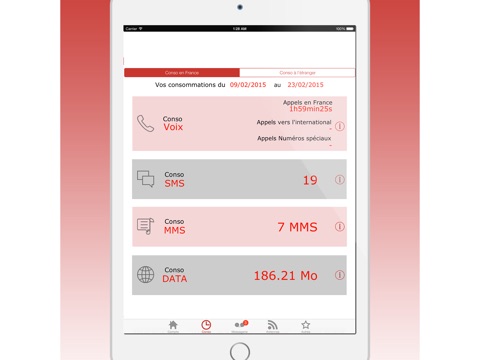 ◆ Suivi conso Web, appels, SMS/MMS, numéros spéciaux en France