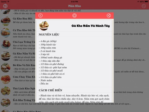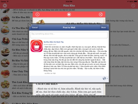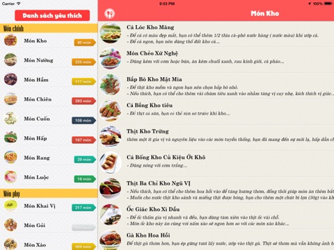 Ứng dụng với tập hợp hơn 3000 món ăn của khắp 3 miền trên đất nước Việt Nam. Danh sách các món ăn được phân loại rõ ràng giúp việc tìm kiếm trở nên dễ dàng. Nội trợ chưa bao giờ là một công việc dễ dàng nhưng giờ đây sẽ bớt đi một phần nào đó cho chị em nội chợ khi phải suy nghĩ, tìm kiếm những món ăn ngon nhất cho gia đình mình. Ứng dụng dễ dàng giúp mọi người chia sẻ những món ăn ngon nhất tới người thân, bạn bè xung quanh hay lưu lại những món ăn ngon nhất vào danh sách yêu thích của mình.