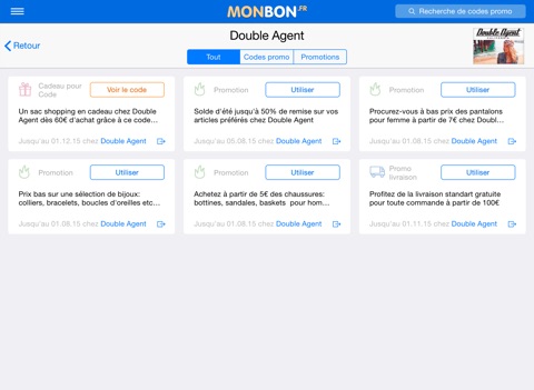 Au quotidien les données actualisées se composent de centaines de boutiques avec des milliers de codes et de promotions.