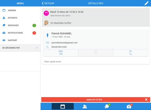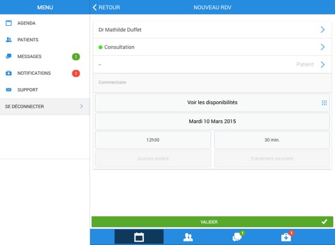 Lapplication se bloque parfois quand on veut rafraîchir lagenda et annonce "vous navez pas de rendez vous" ! Et depuis la dernière mise à jour, elle met 3 fois plus de temps à se charger ..