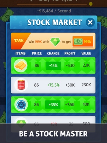 Money Clicker: Stock Master is a free game but does offer in-app purchases of certain magic tool.