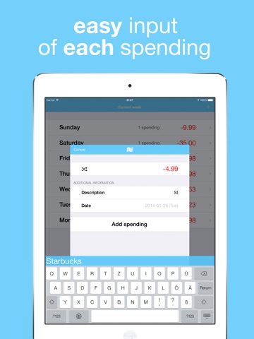 * Quick and easy usage: Only 3 taps to add a spending!