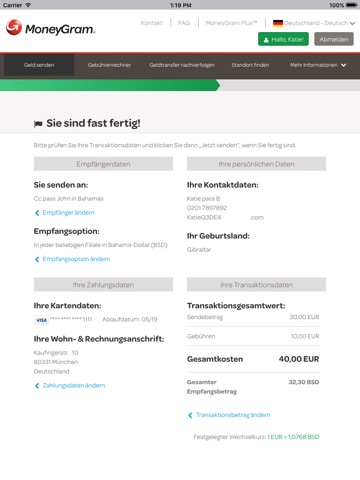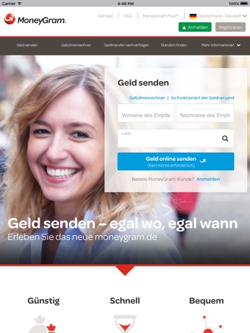 Mit der mobilen App von MoneyGram können Sie Geld weltweit versenden (als Gast oder registrierter Benutzer!), Transaktionen nachverfolgen, Ihre Rechnungen bezahlen, die Transfergebühren für Online- und Bargeldtransaktionen schätzen lassen, Standorte finden, Ihr Konto verwalten und noch Vieles mehr!