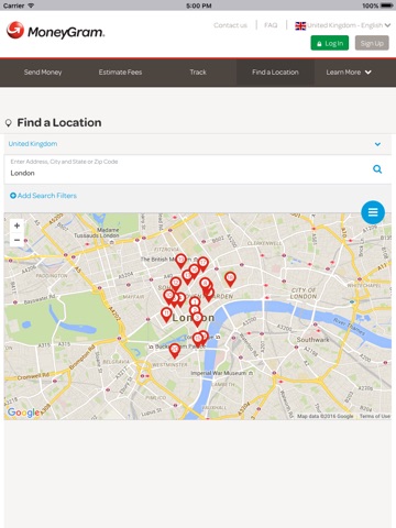 The MoneyGram® money transfers app will display available services based on your location. Not all services will be available in all countries. The app supports the same send and receive countries shown on our website, https://www.moneygram.com/mgo/gb/en/