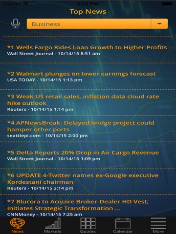 * News: Top market news summaries (which you can customize) as well as breaking headlines