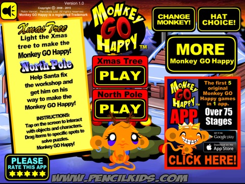 Complete 2 exciting Christmas episodes of this point and tap adventure game and make the Monkey GO Happy.
