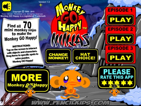 Complete 3 exciting Ninjas episodes of this point and tap adventure game and make the Monkey GO Happy.