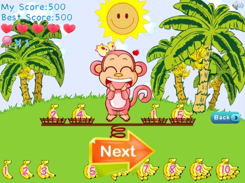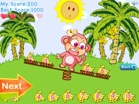 Game can help kid quickly master within 1-20 in addition and subtraction, achieving 100% accuracy. The game is equipped with score ranking feature that allows parents and children know the learning status. Well, if your children do right, little monkey can complete the mission.