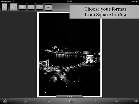 - playful navigation: swipe on the image to try out the next filter, frame or format