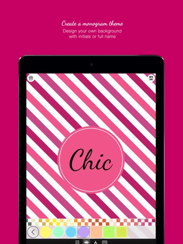 Monogram Chic FREE is your personal wallpaper maker. Select a cute pattern, add a badge and write your name or initials. That’s it! You can also customize the colors and the fonts to make your background truly unique.