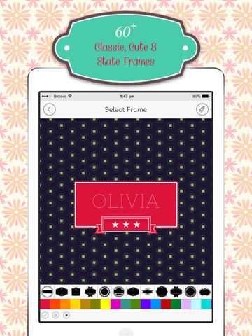 Select a background inspired by the latest fashion and home styles. Customize font, color, monogram frame shape and more.