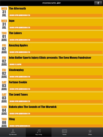 Its all about Monroes Live! Download the official app for Galways Premier Live Music Venue. Use the app as a membership card, scanned upon entry. Receive Discount tickets, special offers, regular updates and a whole lot more. Check out whose in town with the Live Gig Listings facility.