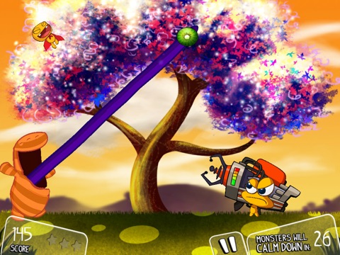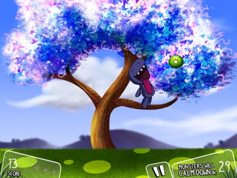 Meet Mylo, Puddy, Sonny, and Eli. These monsters love fruit. Their favorite fruit comes from a magic tree in an enchanted garden. When the fruit appears, grab it and play "keep away" from the monsters for 30 seconds until they calm down. Each monster has a super power and will do anything to get the fruit from you. We dont want to spoil any surprises but lets just say, expect the unexpected! Heres a secret... The monsters are very, very, very ticklish. You can tickle one or all at the same time. Try and get the highest score you can. The closer the fruit is to the monsters, the more points you get. When 30 seconds are up and the monsters are calm, give them the fruit. This way they learn to be patient and grateful.