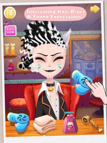 • Choose from curling iron, straightener, and crimper to make the monster’s hair more stylish