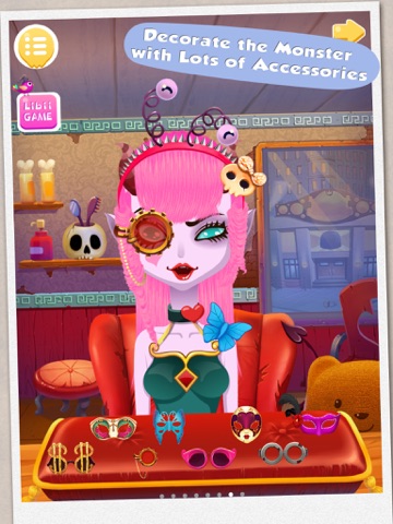Here you can do a lot of things on the monster’s hair with different tools, such as wash, dry, blow, comb, cut, shave, trim, straight, curl, and color, meanwhile, you can still have plentiful decorations and props to put, not only on the hair, but also on the monster’s face and head, such as interesting accessories, cool masks, attractive glasses, awesome hats and so on.