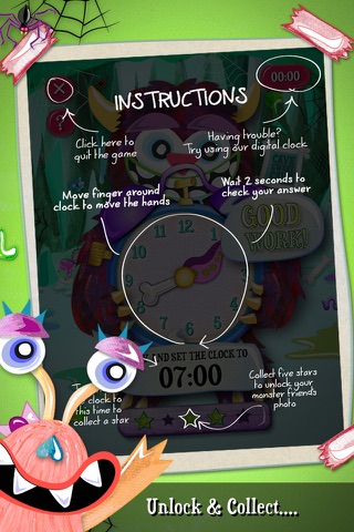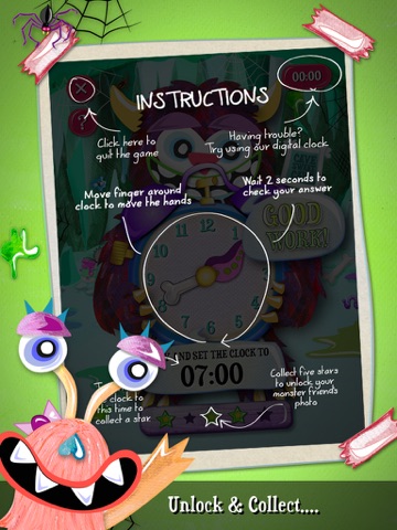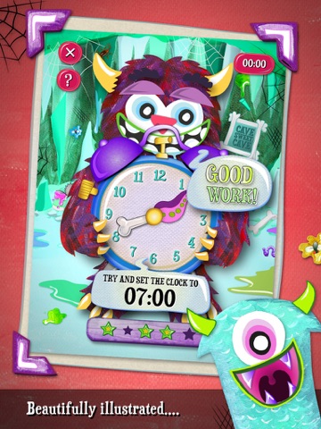 Times are kept to on the hour and half-past the hour for a nice easy introduction to telling the time. Get 5 stars and you’ll unlock a pic of your monster!