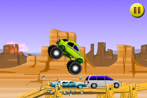 Drive through amazing tracks and destroy as many vehicle as you can in each thrilling and entertaining level. Enjoy the mayhem, and collect all three stars from each level and gain coins to enhance your monster vehicle even more!
