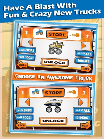 Download Super Fast Offroad Monster Trucks today for some amazing racing fun! Choose from 10 different trucks while you blast your way through the challenging levels. And dont worry if you get stuck on one, just use a level skip to keep on trucking towards the goal of Monster Truck Champion!