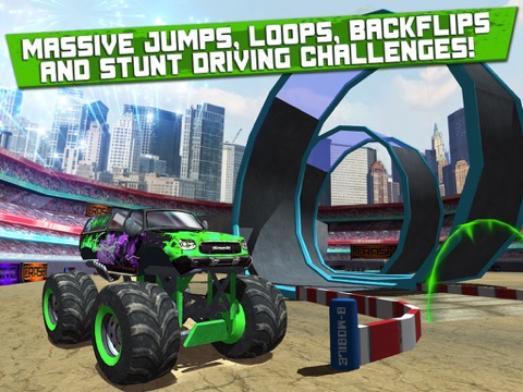 Strap in tight for some Mega Monster Truck Stunt Driving Action! Dominate the arena full of obstacles, amazing jumps, tricks opportunities and fun challenges to complete!