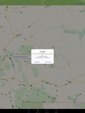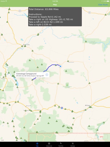 Find Directions from your current location to any campsite or Search Custom Route directions between any two desired locations on map.