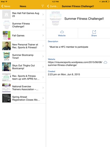 • News feed from the Fitness Staff blog or Rec Sports Facebook page.