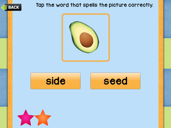 This app is pretty confusing for kids who are just learning how to read. They throw a lot of homonyms into the game (such as meet and meat), so struggling readers who try to sound out words based on phonics rules really get frustrated. Also, the voice quality is pretty poor and computer-like when the narrator pronounces the words for the child. Graphics are a little corny, too.