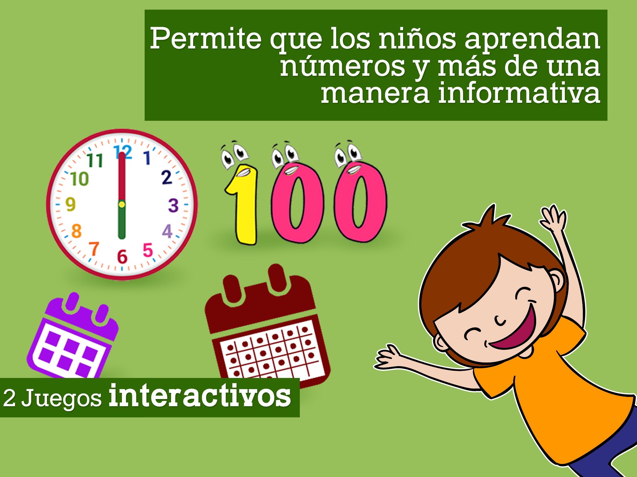 Learn Numbers, Time, Days and Months for kids will always guide your kids in positive manner with enthusiastic appreciation sounds and floating balloons!