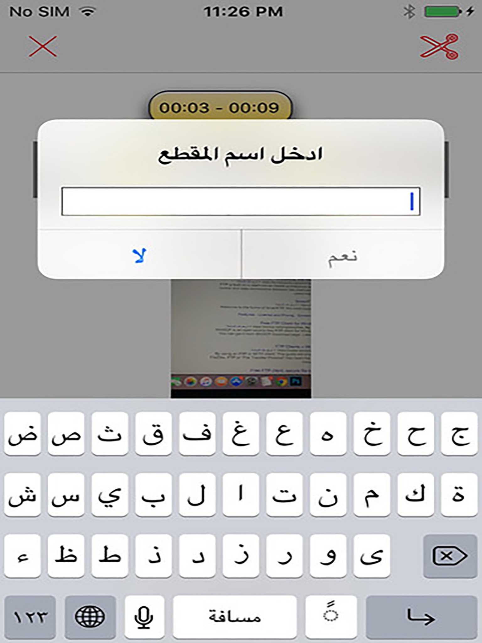 واخيرا تقوم بالضغط على اشارة المقص لتظهر لك شاشة تسمية المقطع الجديد.