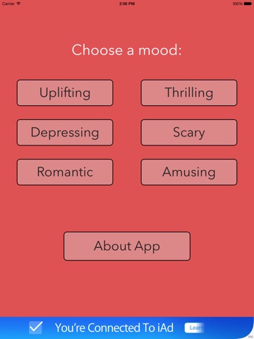 Simply choose one of six different moods and get a list of suggested movies based on that mood. Featuring 60+ handpicked movies and an interface that shifts colors based on the chosen mood.