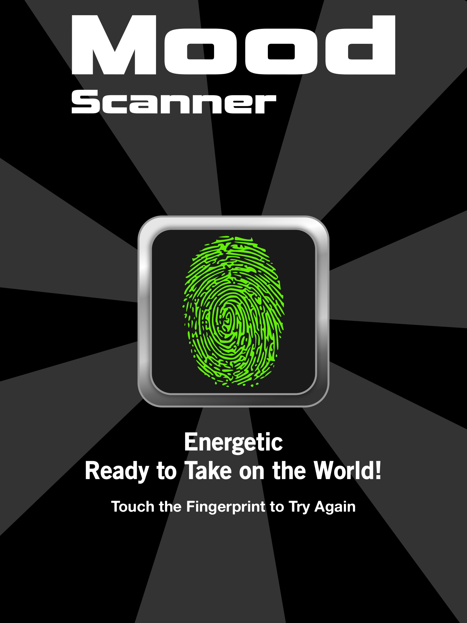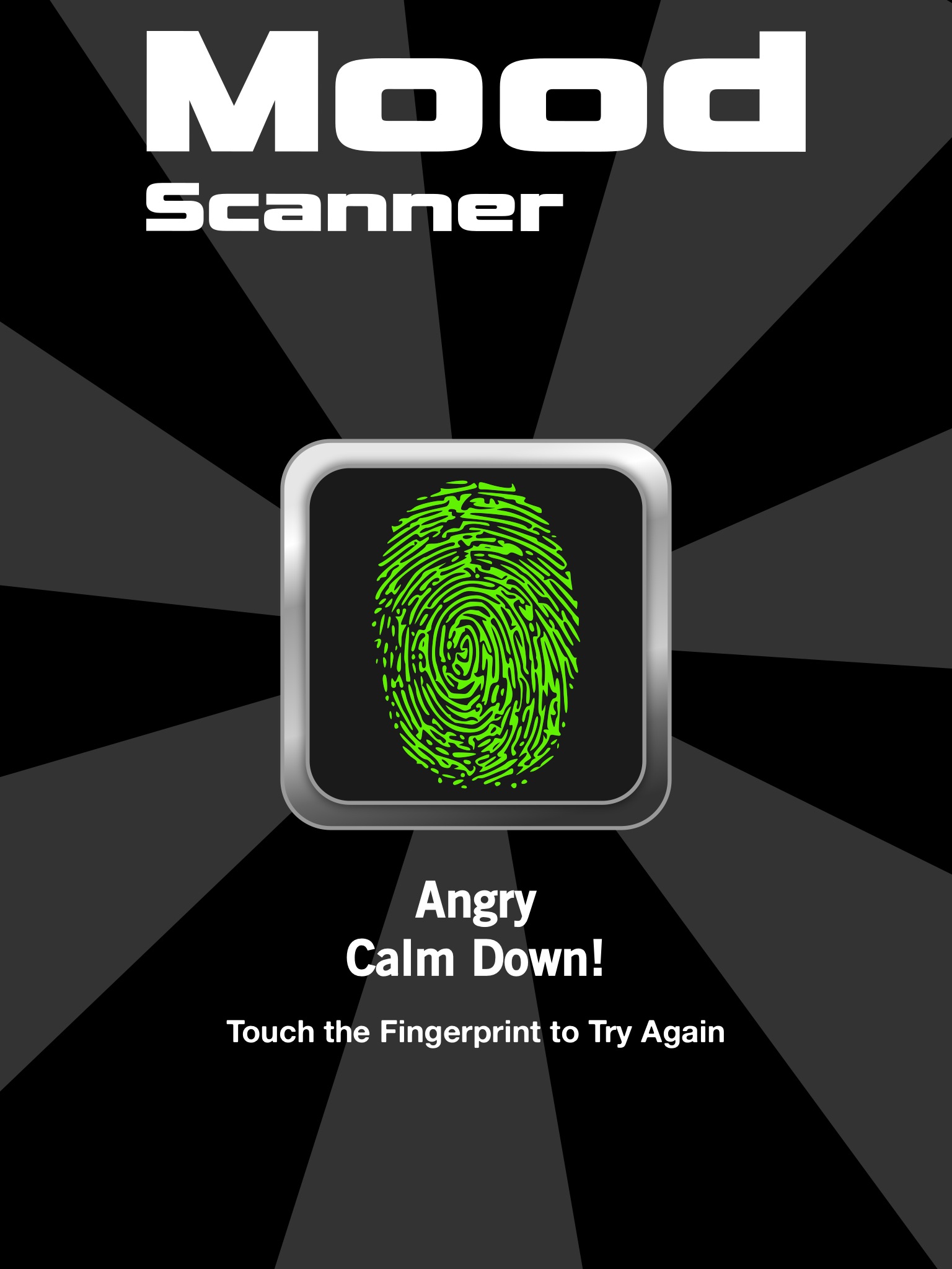 Have fun with your friends and family with this prank mood scanner app. Just touch and hold the fingerprint to do the scan. The app will randomly tell you what your mood is.