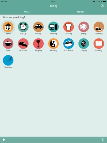 Just choose your mood and activity and start playing music. Re-discover your collection and let MOOJ® take care of your playlists. You can also teach the app by choosing music from your library.