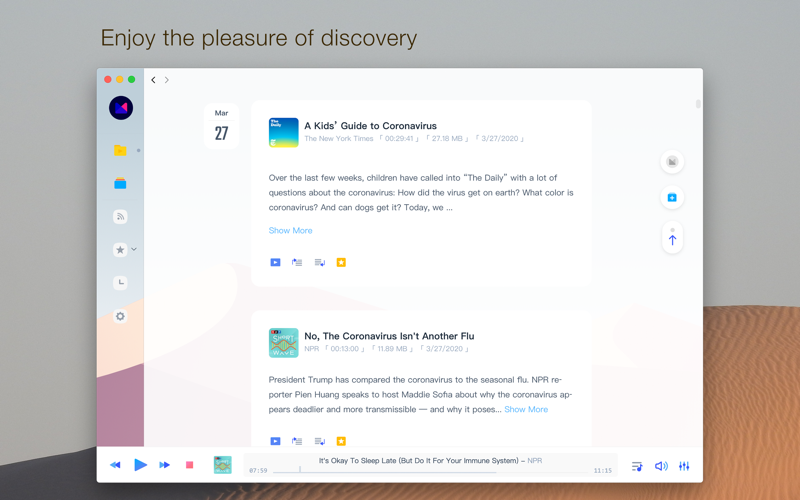 Moon FM is an easy to use podcast player for podcast lovers, offering a modern, fully featured audio podcast player in a simple, intuitive interface.