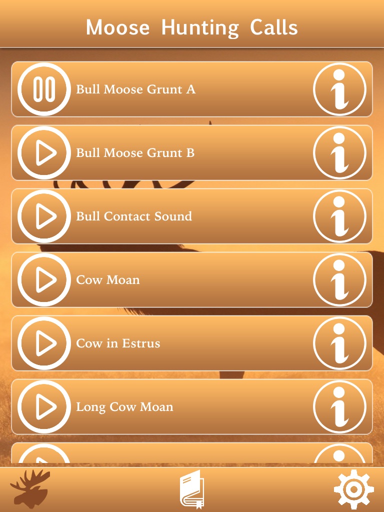 This app includes 12 calls for Moose with instructions. The instructions allow you to read the description of every call and appropriate situation for using specific a call.This app is specially designed keeping hunters in minds having clear and big play, stop or change calls buttons for easy accessibility during difficult terrains.
