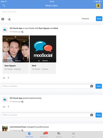mooSocial is a "white labeled" Multi-Platform Social Network software. Start your social network right out of the box with mooSocial and customize it anyway youd like. It is aesthetically built with end user experience in mind. mooSocial is highly configurable and expandable along with the ability to add additional themes and plugins. It is easy to use even for site owners without programing skills.