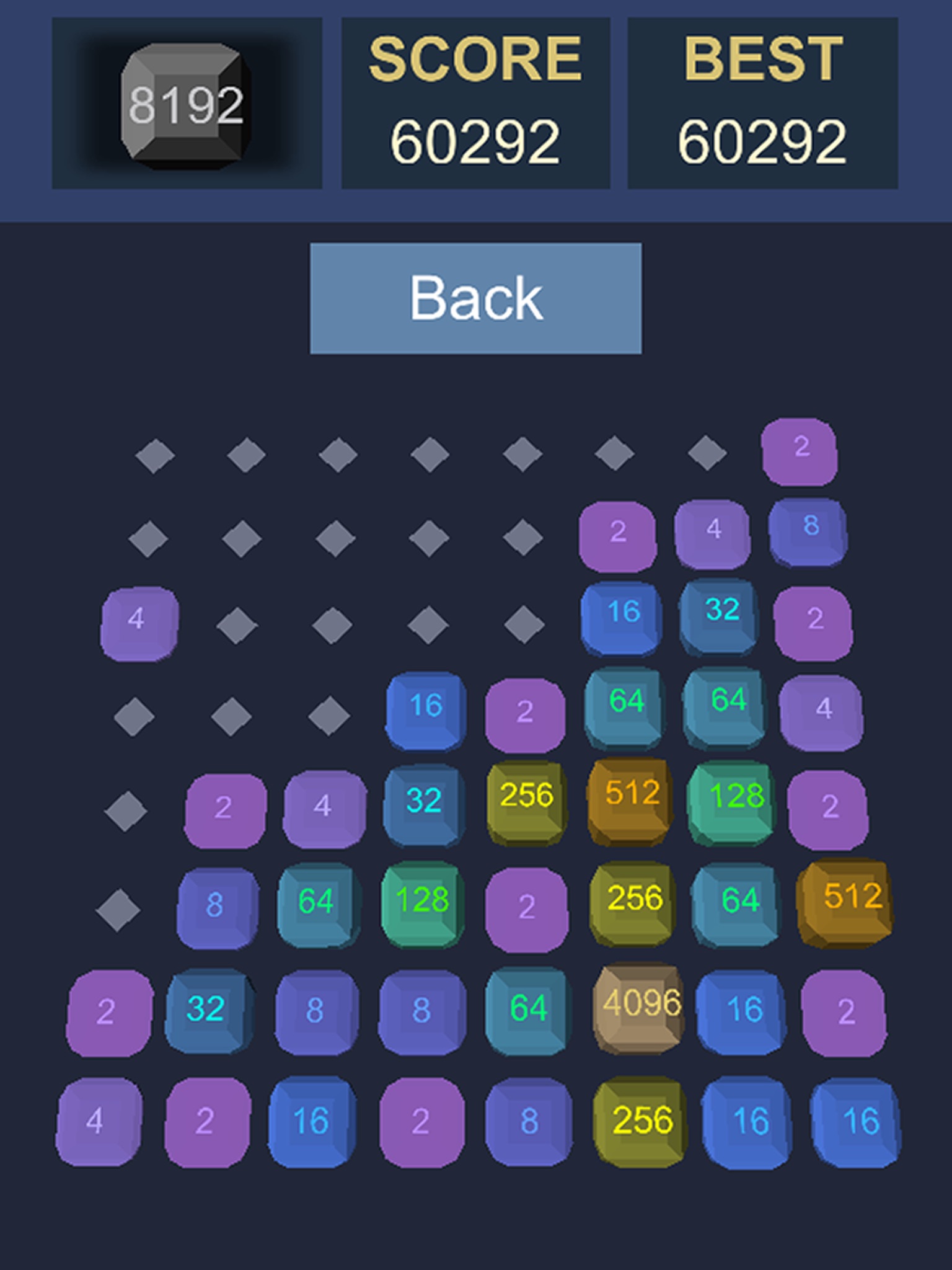Wanna play some different 2048 type game? We present to you "More 2048 3D". You can play any scale of 2048 from 2x1 to 5x5 6x6 7x7 8x8. In the game you can play with the simple 3D geometry and have more fun!