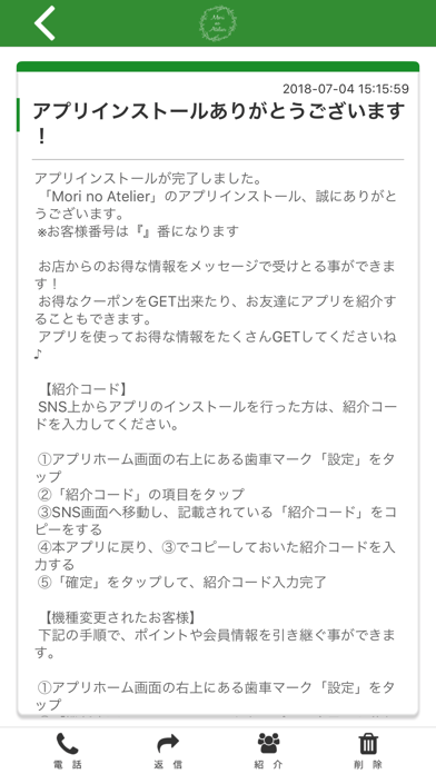 森のアトリエのアプリをSNSを通じてお友達に紹介する事ができます。