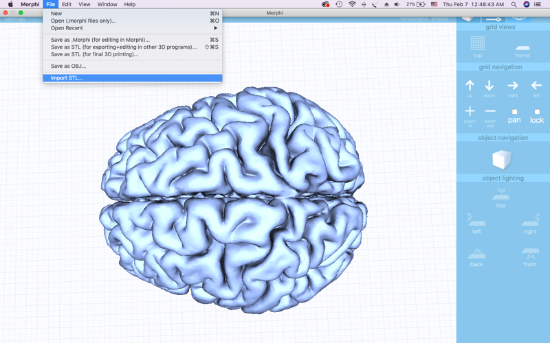 -Import 3D models (STL+OBJ) from other Morphi apps + edit.