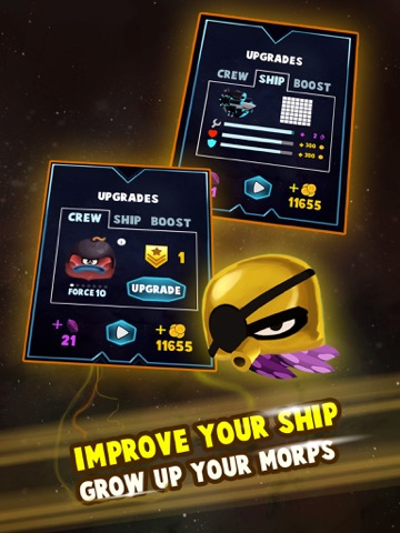 Gain Experience, Gold and Diamonds to size up your Crew and make your spaceship bigger and stronger.