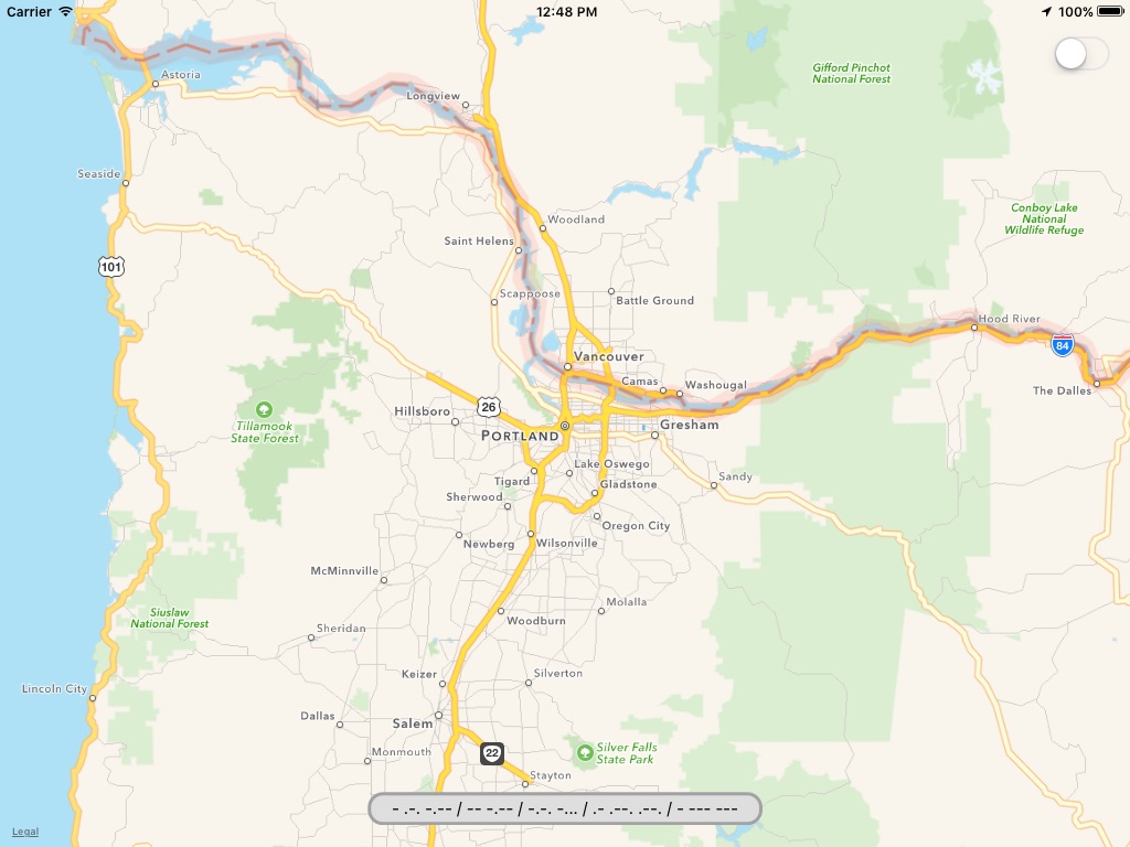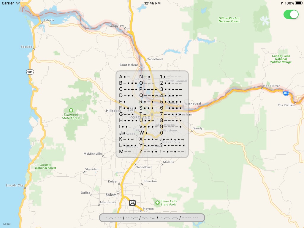 Morse is simple: the entire screen is your morse code key, so tap anywhere to start recording your message. Youll hear your tones as you tap (if you dont, turn up the volume!), and a red recording light will show in the upper right corner of the screen. When youre done with your message, just stop tapping, and the recording light will go off, and your broadcast will go out to all the other active users of the app!