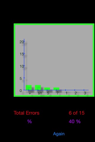 Constantly the error rate is displayed and supported by changing colors. The third page shows a bar graph statistic of the performance giving feedback on the errors which allows to learn more specifically.