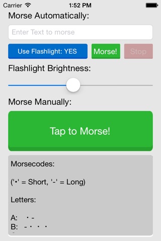 You can also Morse by yourself by tapping the Tap to Morse! - Button.