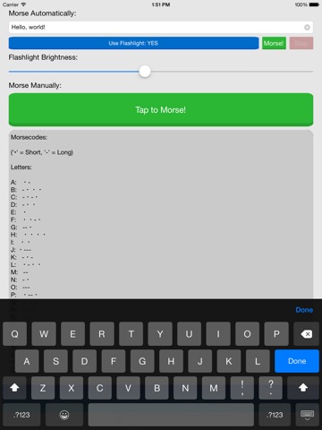This is a simple and useful Application to use your iOS Devide to morse a String. Just enter a text to morse and tap the Morse-Button.