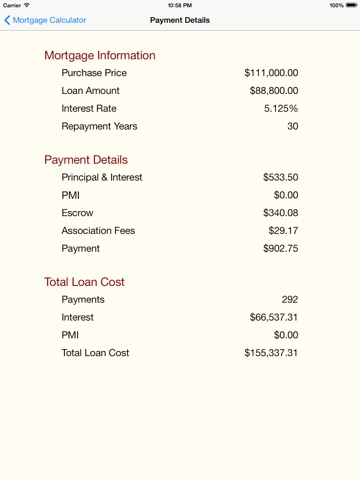 With Mortgage+, you can quickly and easily figure out how much that new house will cost or figure out how much you can save by refinancing. If you know the purchase price, interest rate and down payment amount, you can use Mortgage+ to calculate your payment and amortization schedule. It will also give you a break down of the total cost of your mortgage.