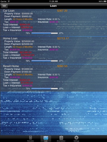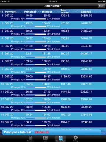 Display Payment, Principal, Interest, Total Interest, Balance with progress bar
