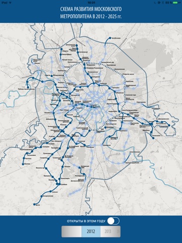 Приложение также позволяет увидеть перспективную схему метрополитена в разбивке по годам.